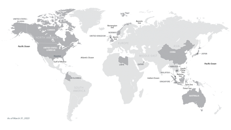 We explore for, develop and produce crude oil and natural gas globally.
